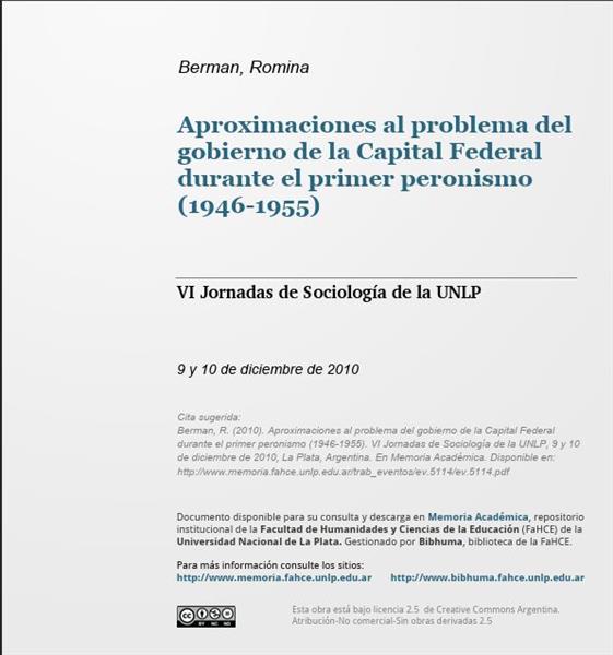 Aproximaciones al problema del gobierno de la Capital Federal durante el primer peronismo (1946-1955)